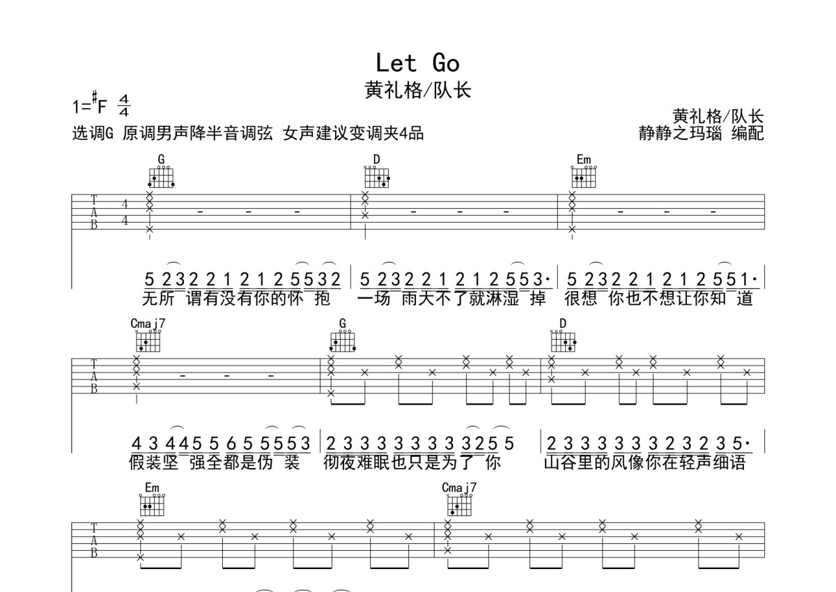 黄礼格/队长《Let Go》吉他谱 - G调弹唱六线谱