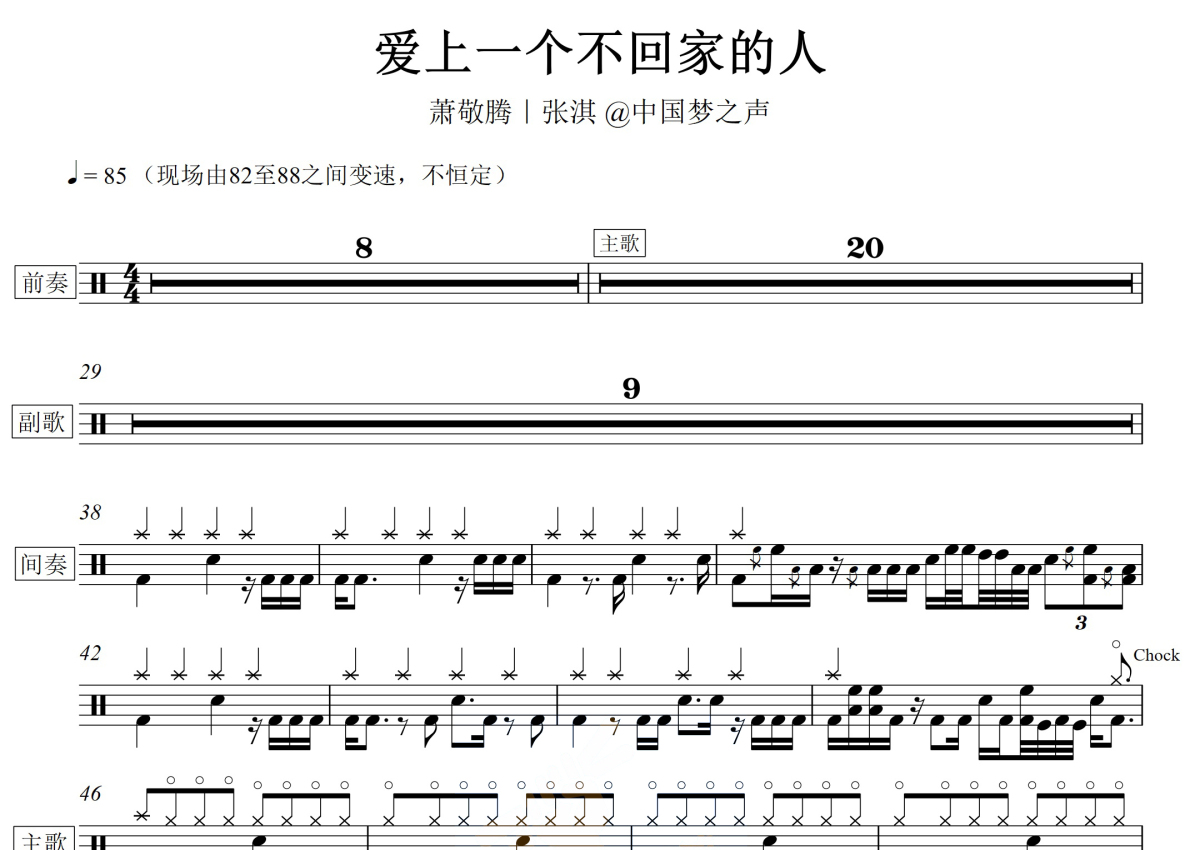 萧敬腾|张淇@中国梦之声《爱上一个不回家的人》鼓谱 - 架子鼓谱