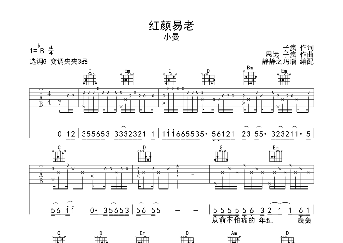 小曼《红颜易老》吉他谱 - G调弹唱六线谱
