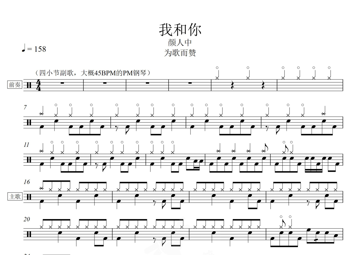 颜人中《我和你》鼓谱 - 架子鼓谱