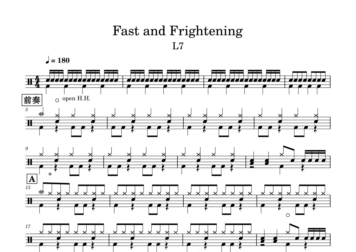 L7《Fast and Frightening》鼓谱 - 架子鼓谱