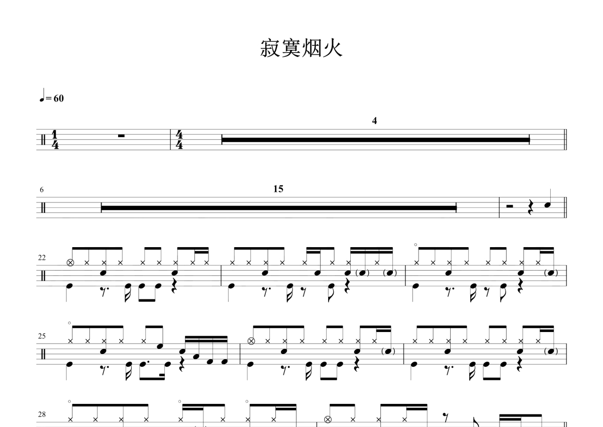 蓝心羽《寂寞烟火》鼓谱 - 架子鼓谱