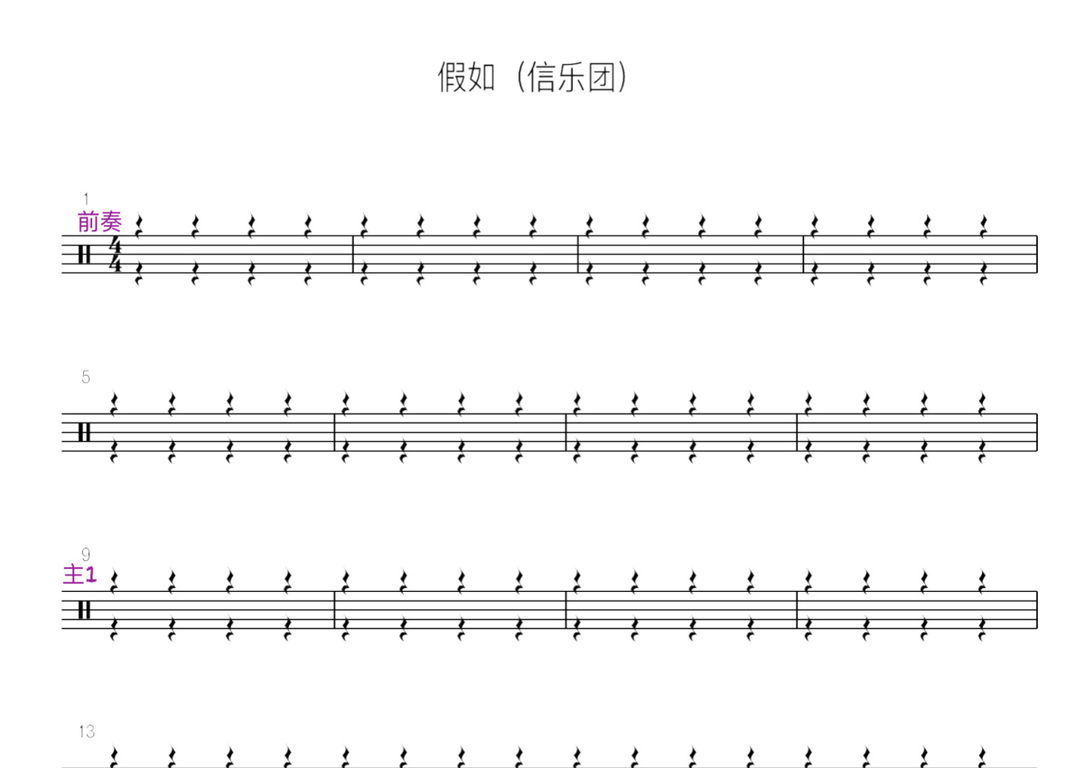 信乐团《假如》鼓谱 - 架子鼓谱