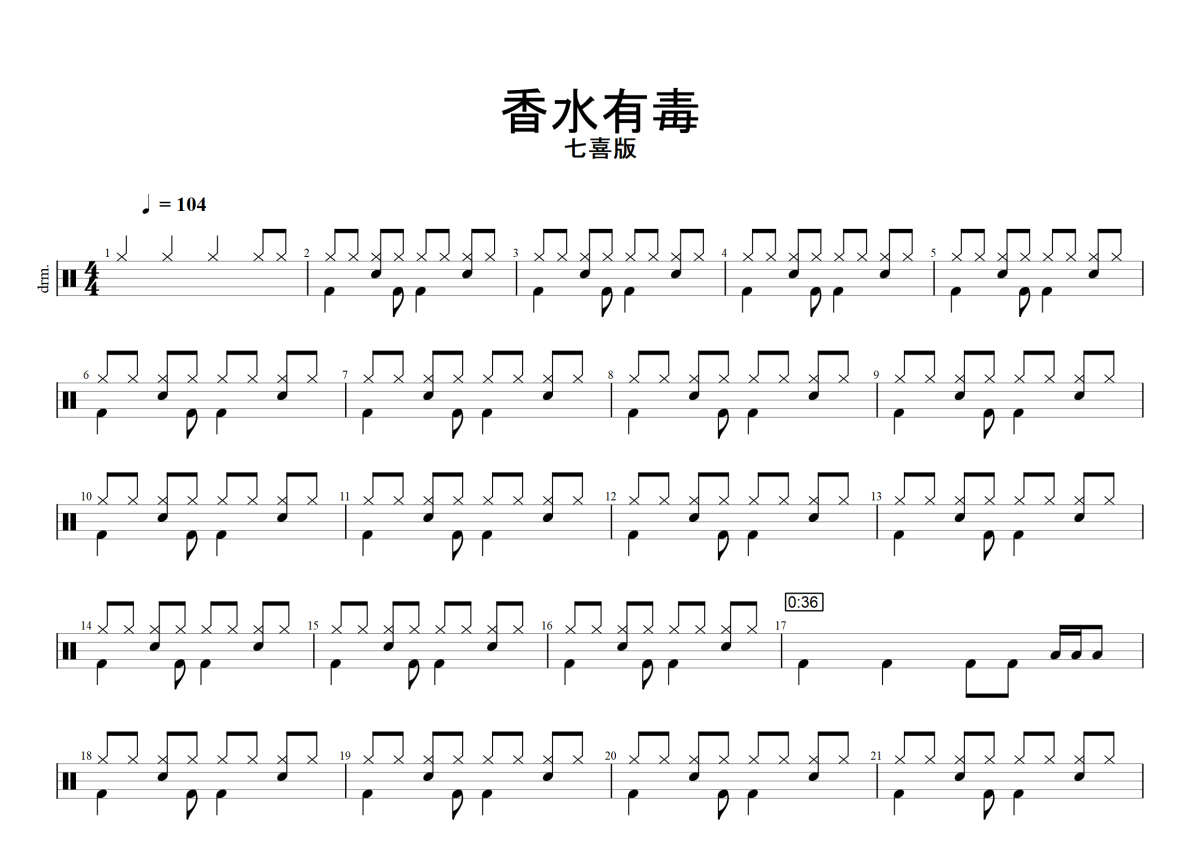 七喜《香水有毒》鼓谱 - 架子鼓谱 - 七喜版