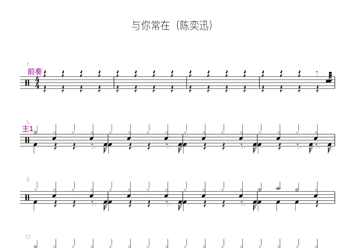 陈奕迅《与你常在》鼓谱 - 架子鼓谱