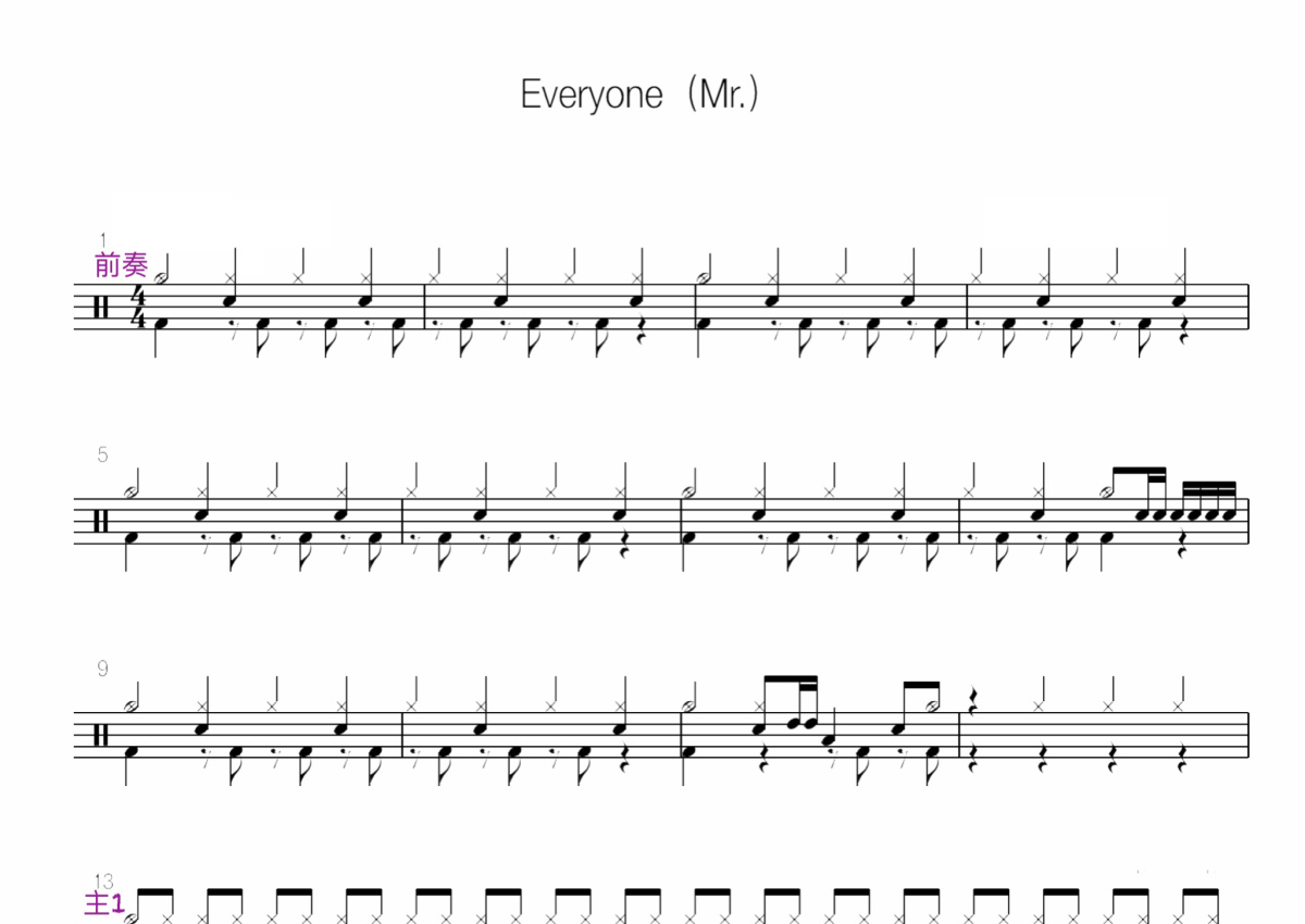 乐队Mr.《Everyone》鼓谱 - 架子鼓谱