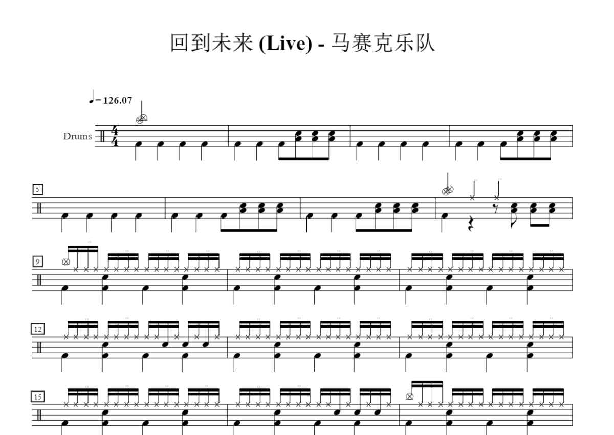马赛克乐队《回到未来》鼓谱 - 架子鼓谱 - 乐队的夏天Live