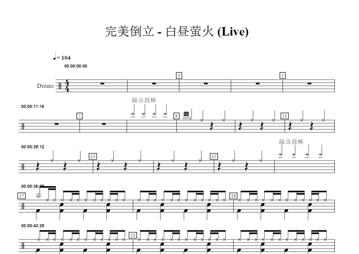 白昼萤火《完美倒立》鼓谱 - 架子鼓谱