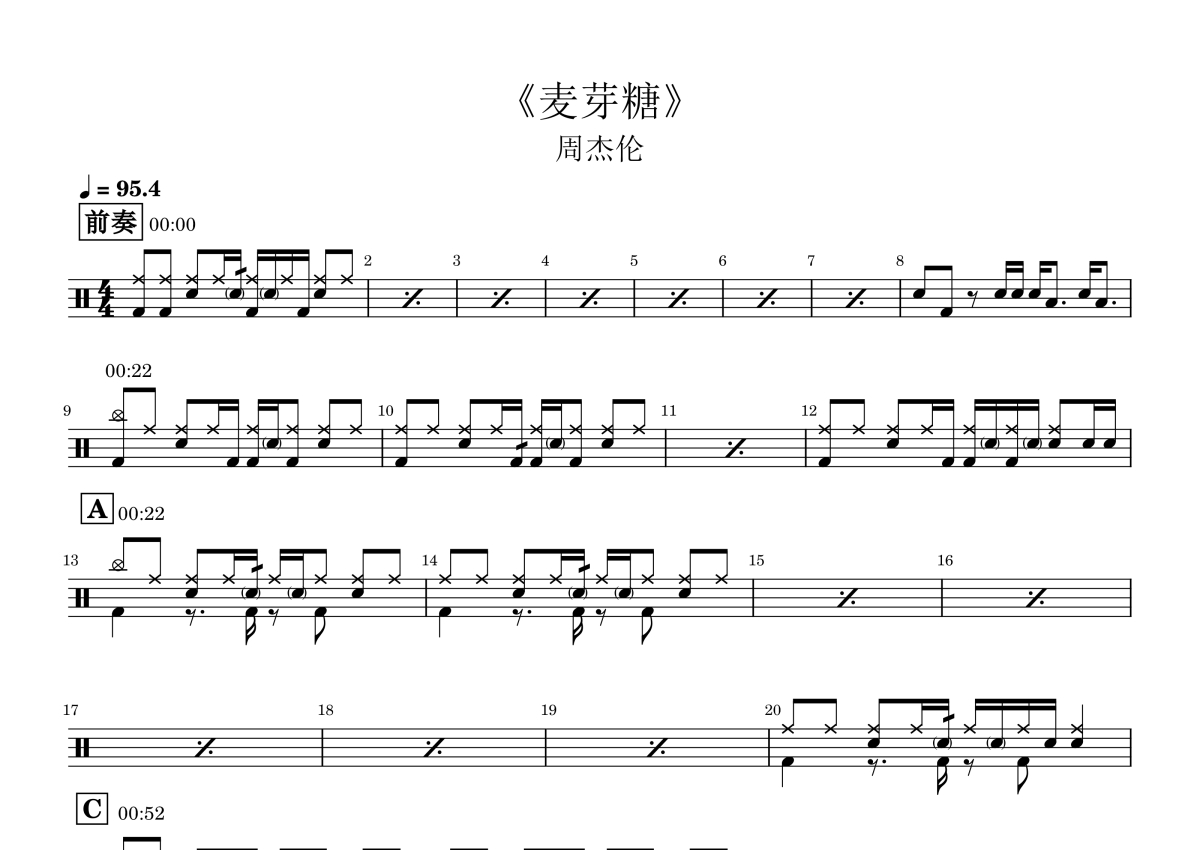 周杰伦《麦芽糖》鼓谱 - 架子鼓谱