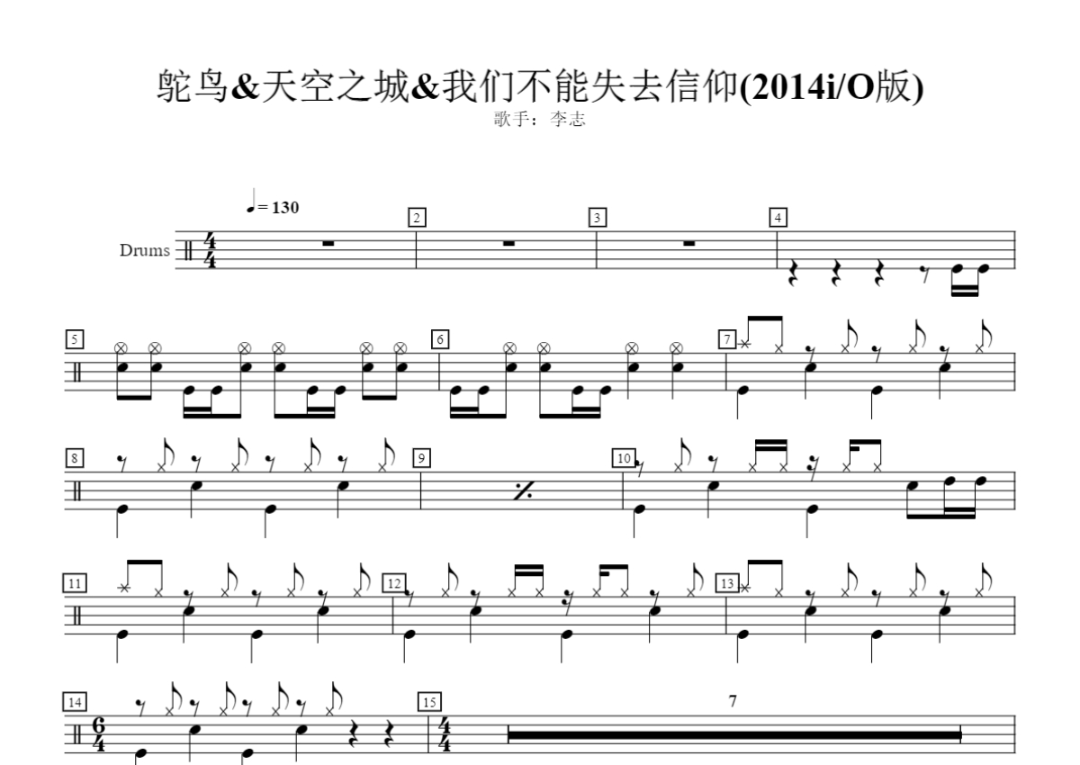 李志乐队《鸵鸟&天空之城&我们不能失去信仰》鼓谱 - 架子鼓谱 - 2014iO版