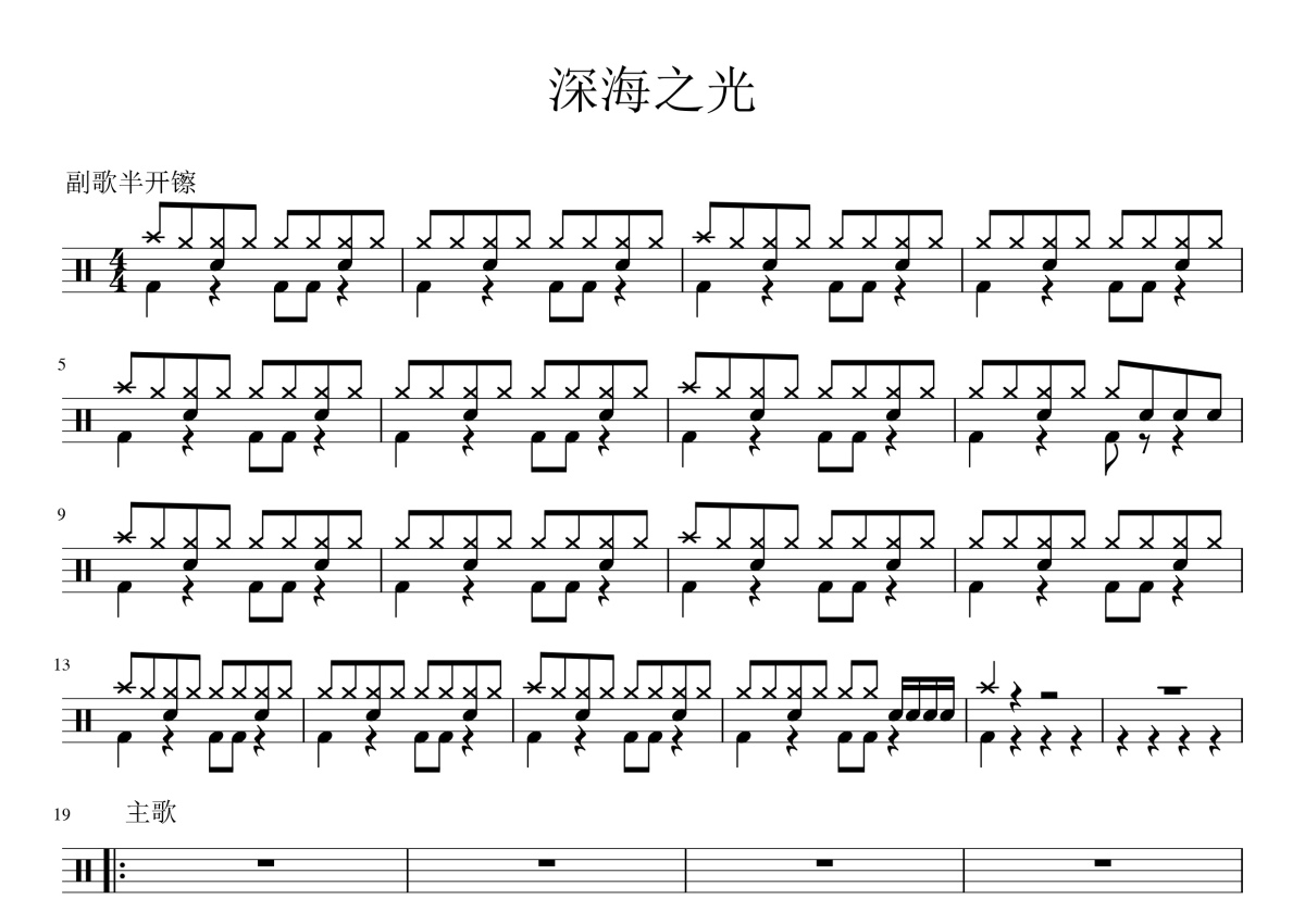 麻园诗人《深海之光》鼓谱 - 架子鼓谱