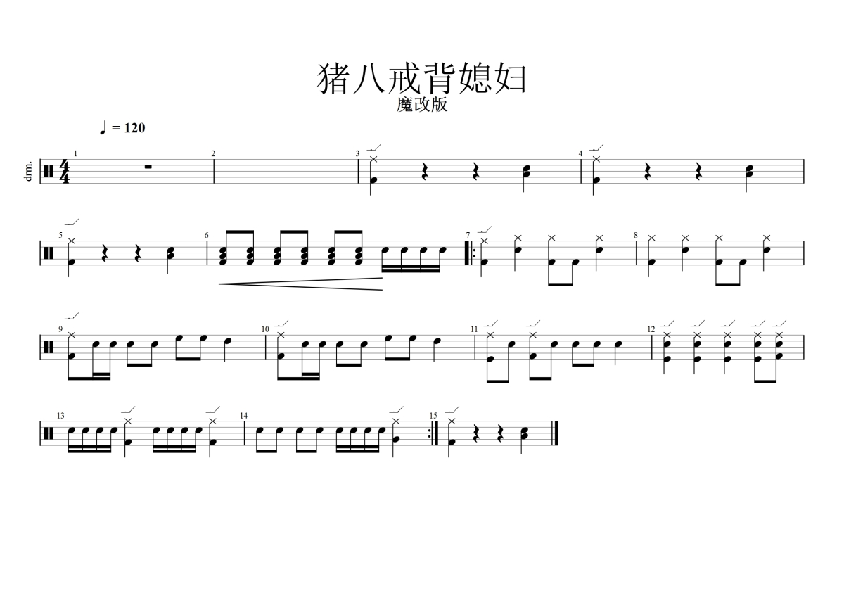 魔改版《猪八戒背媳妇》鼓谱 - 架子鼓谱 - 魔改版