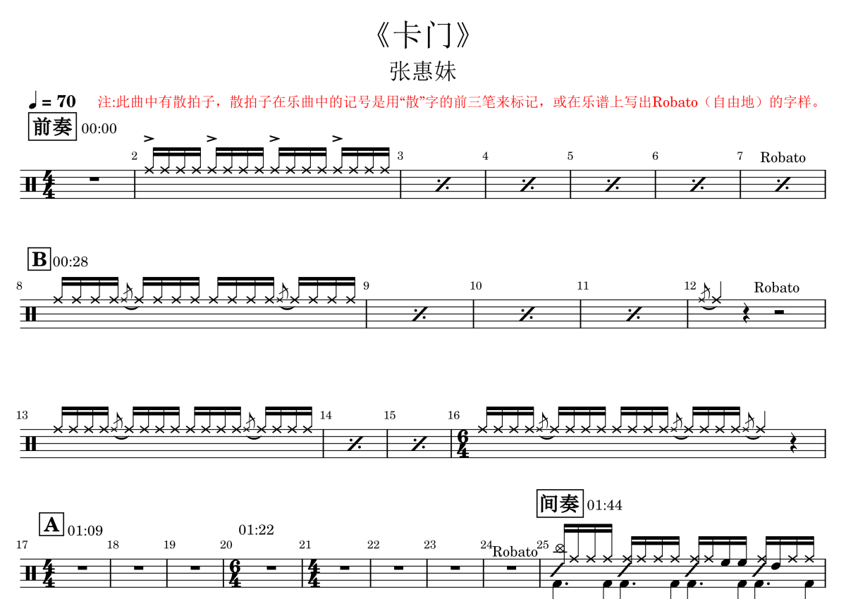 张惠妹《卡门》鼓谱 - 架子鼓谱