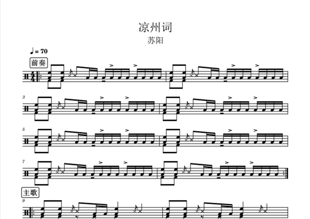 苏阳《凉州词》鼓谱 - 架子鼓谱