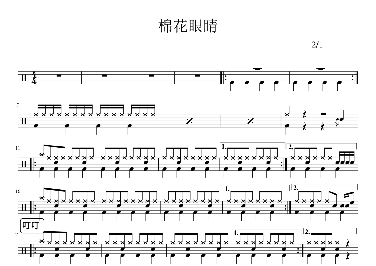 改编版《棉花眼睛》鼓谱 - 架子鼓谱