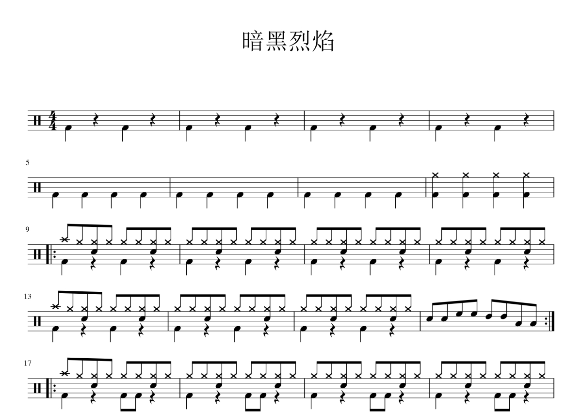 考级二级《暗黑烈焰》鼓谱 - 架子鼓谱