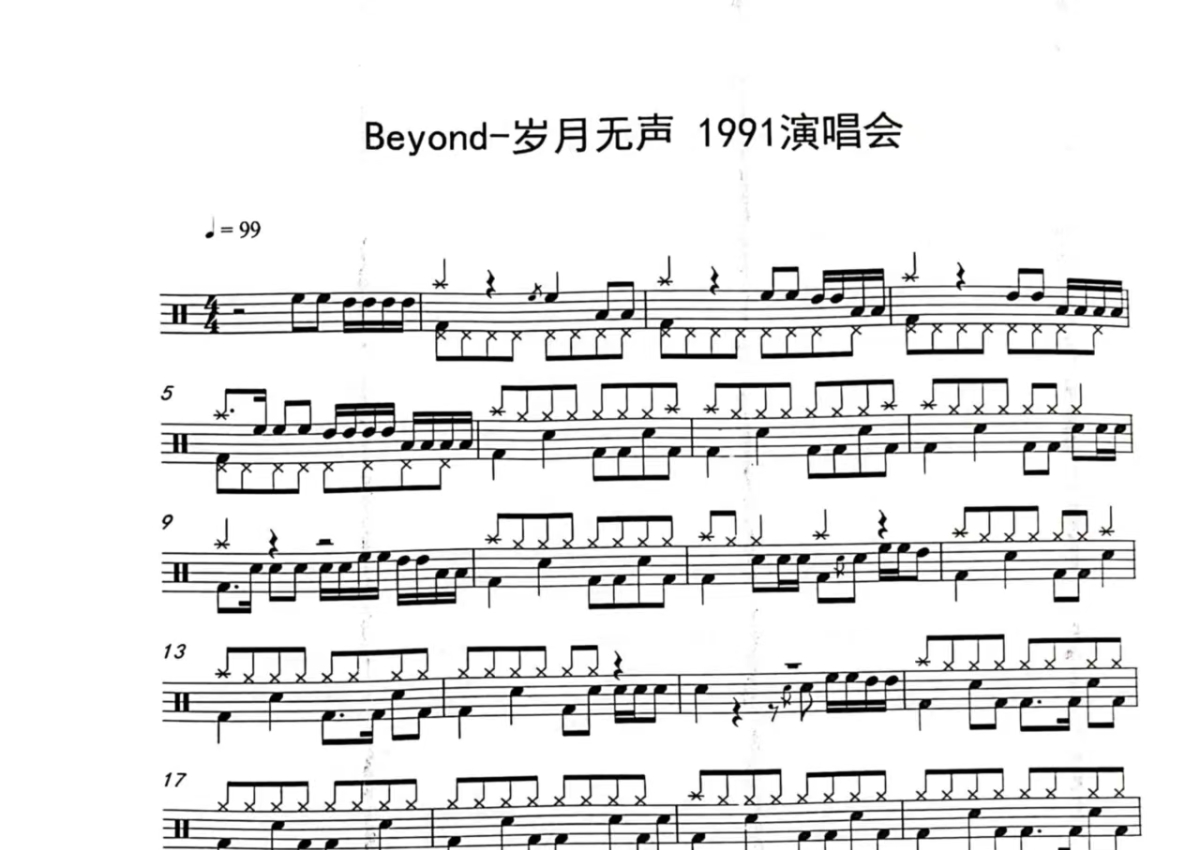 Beyond《岁月无声》鼓谱 - 架子鼓谱 - Live