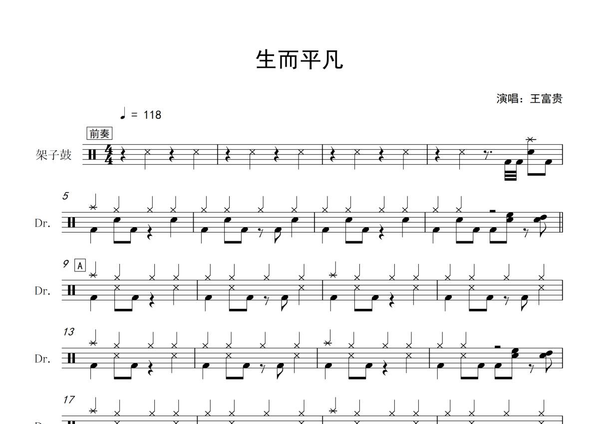 王富贵《生而平凡》鼓谱 - 架子鼓谱