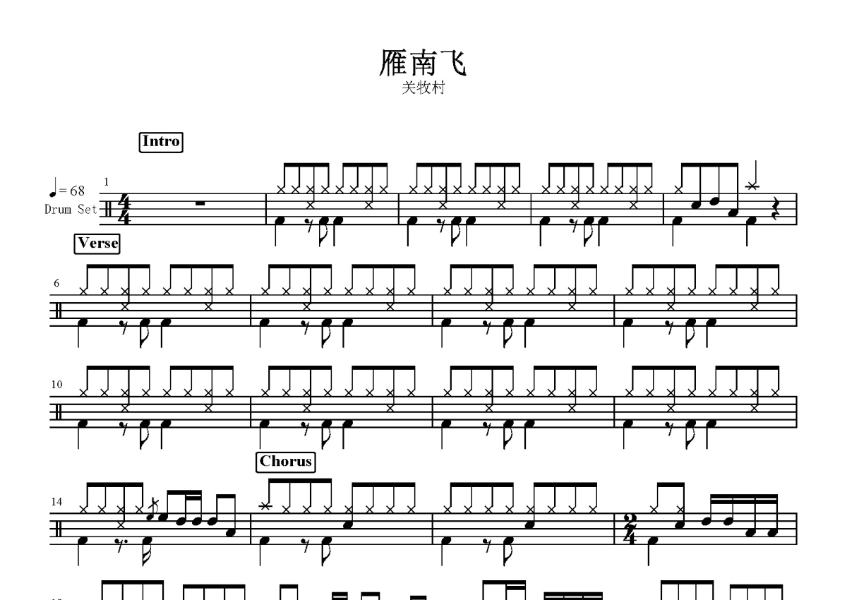 关牧村《雁南飞》鼓谱 - 架子鼓谱