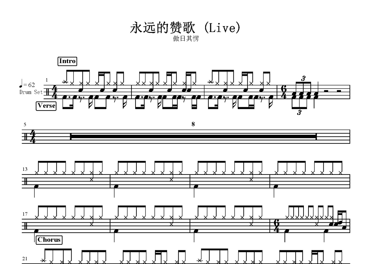 敖日其楞《永远的赞歌》鼓谱 - 架子鼓谱