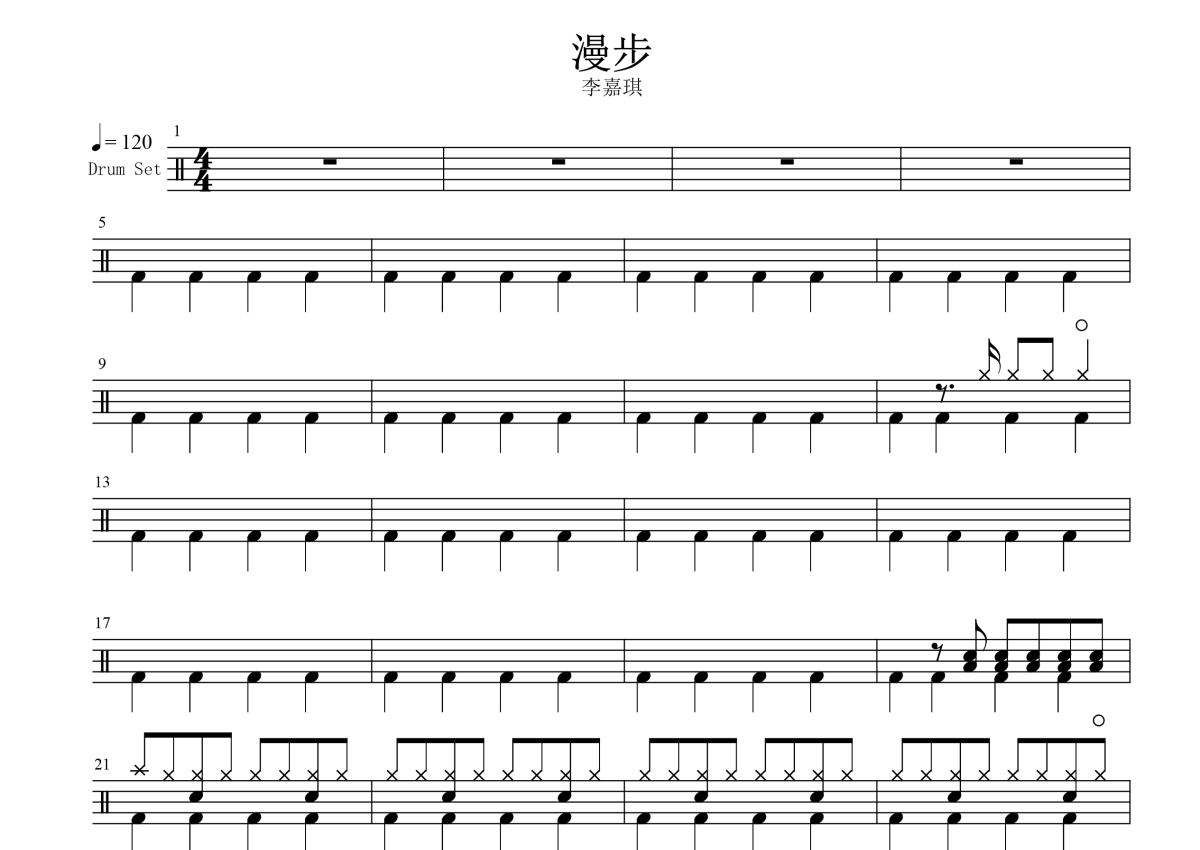 李嘉琪《漫步》鼓谱 - 架子鼓谱
