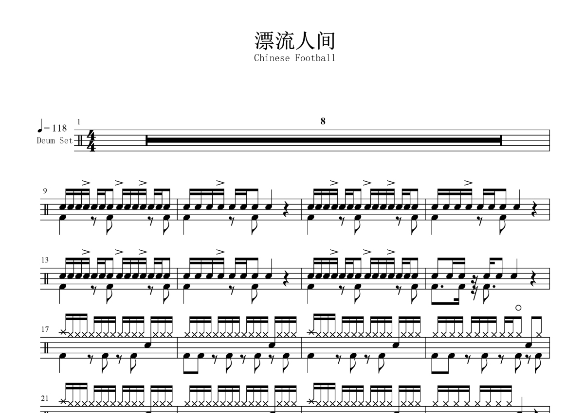 Chinese Football《漂流人间》鼓谱 - 架子鼓谱