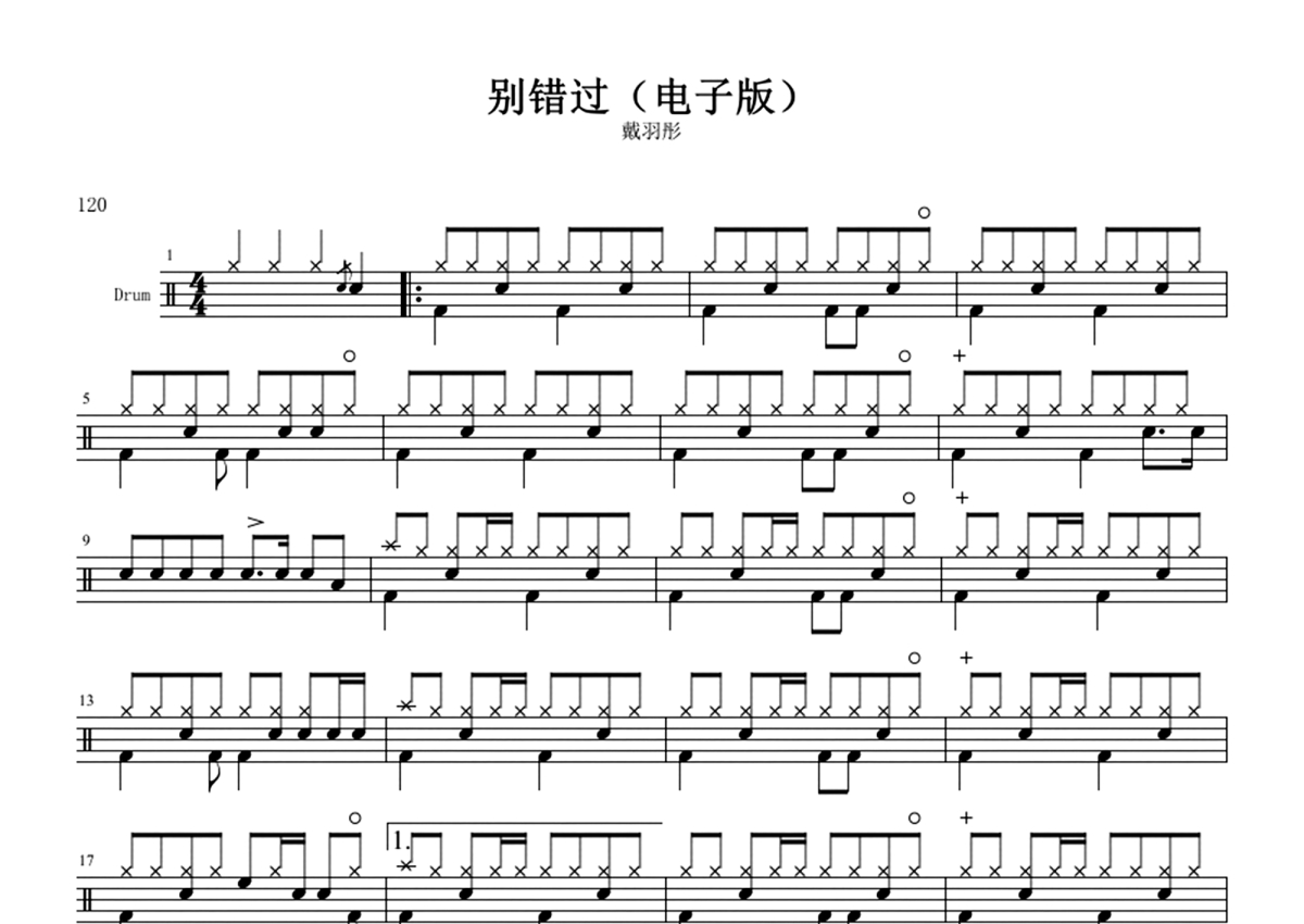 戴羽彤《别错过》鼓谱 - 架子鼓谱
