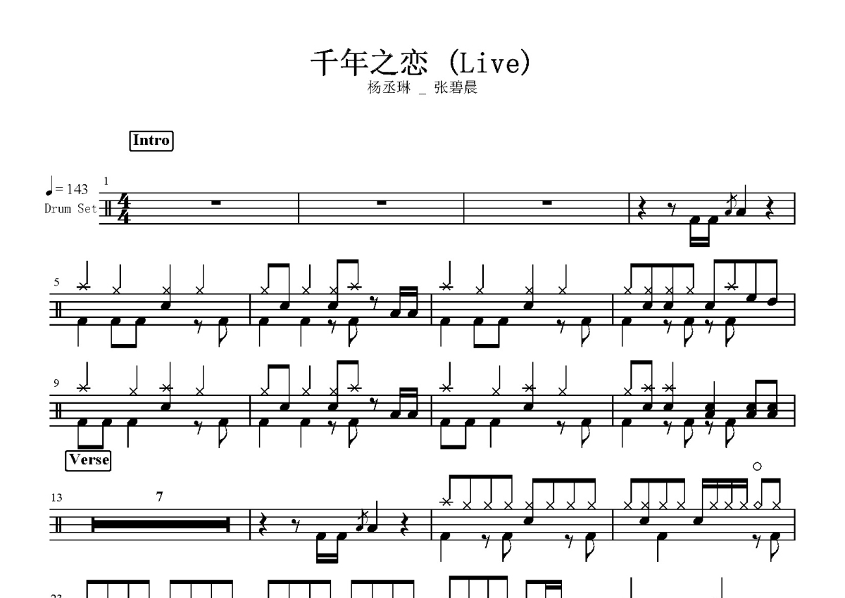 杨丞琳 _ 张碧晨《千年之恋》鼓谱 - 架子鼓谱