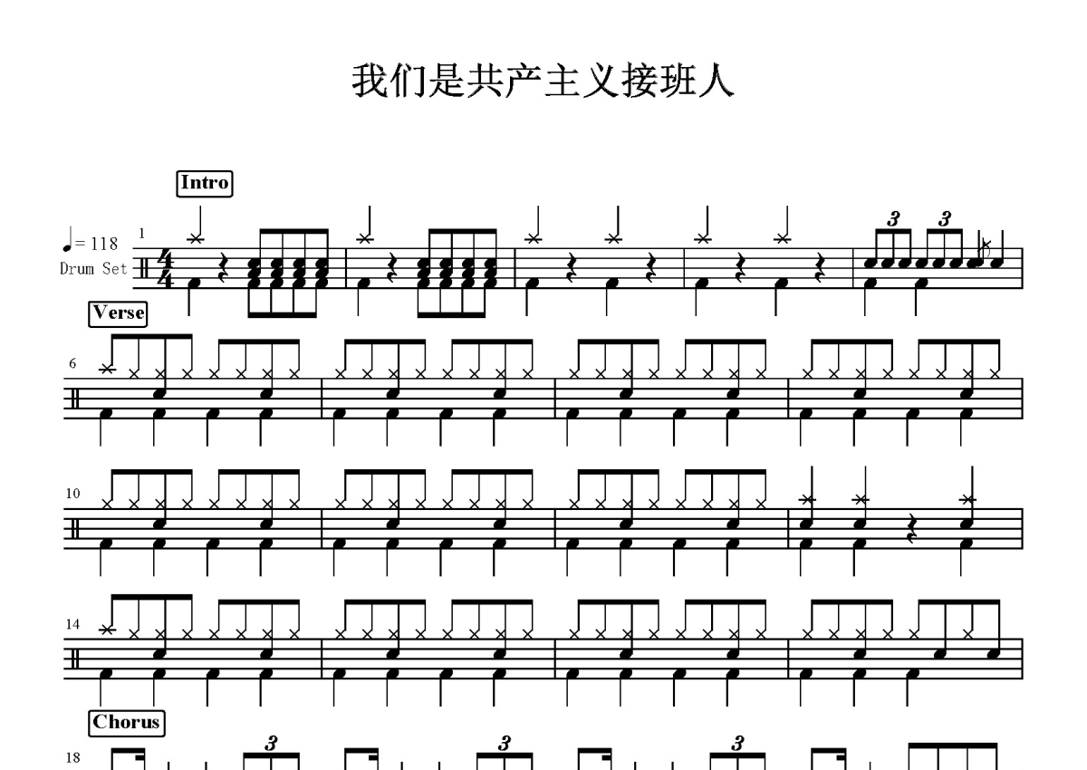 《我们是社会主义接班人》是群星演唱的一首歌曲,这份鼓谱共有两张高清图谱,图谱由 @打鼓谱 编配上传,图谱使用五线谱编配,使用这份我们是社会主义接班人架子鼓谱,你将能够轻松地敲打出这首群星的我们是社会主义接班人,快来尝试吧。我们是社会主义接班人。