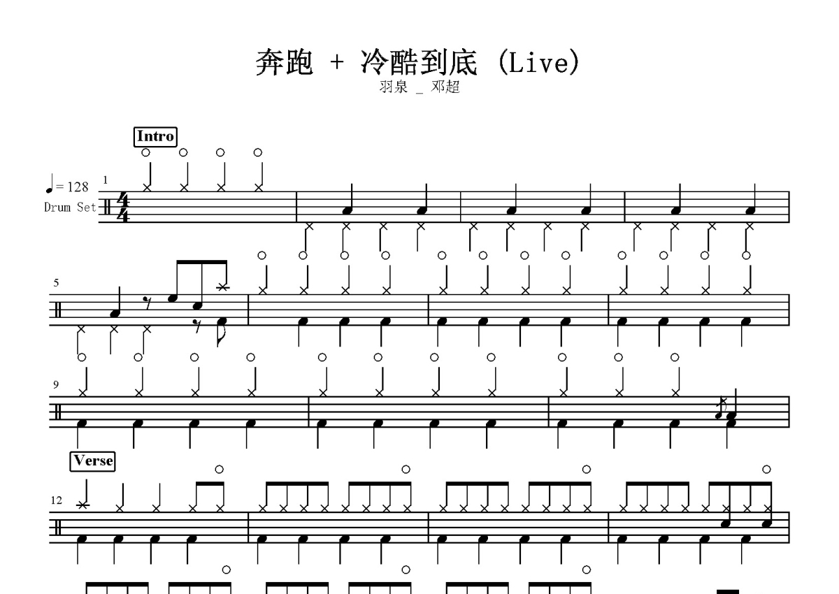 羽泉 _ 邓超《奔跑 + 冷酷到底》鼓谱 - 架子鼓谱