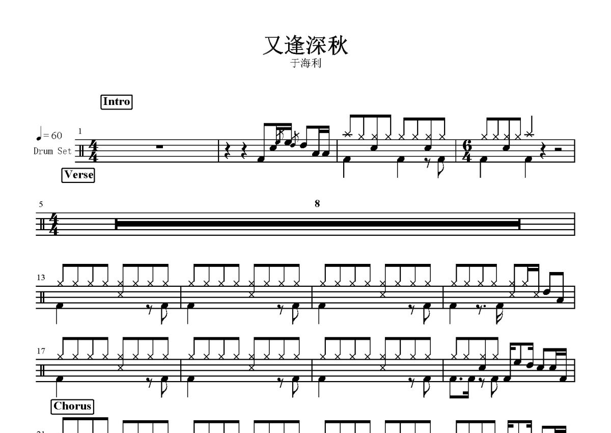 于海利《又逢深秋》鼓谱 - 架子鼓谱