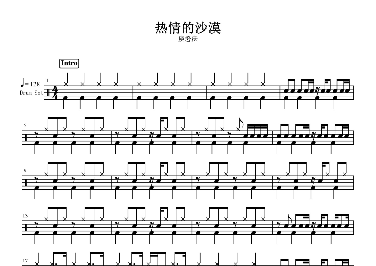 庾澄庆《热情的沙漠》鼓谱 - 架子鼓谱