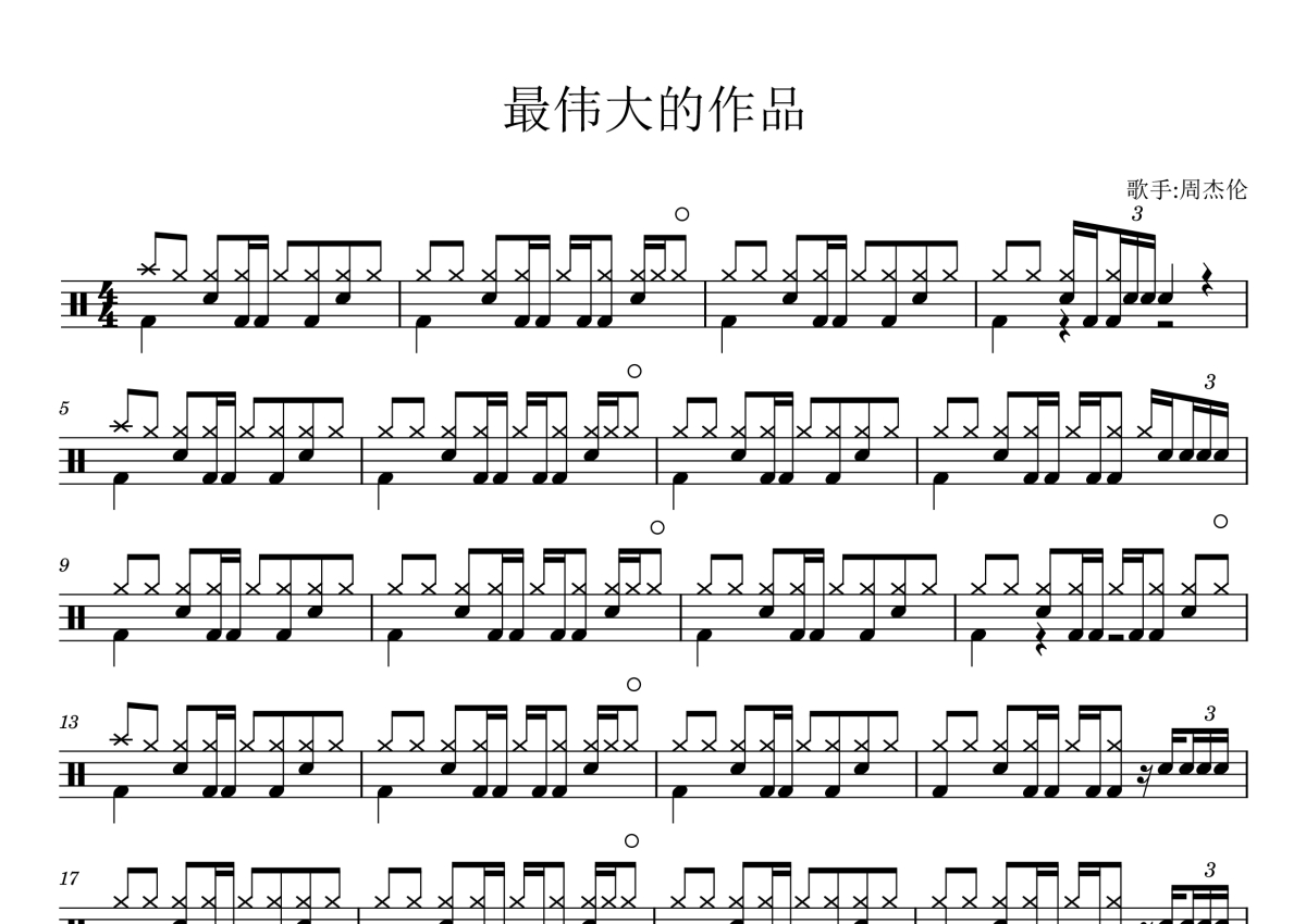 周杰伦《最伟大的作品》鼓谱 - 架子鼓谱