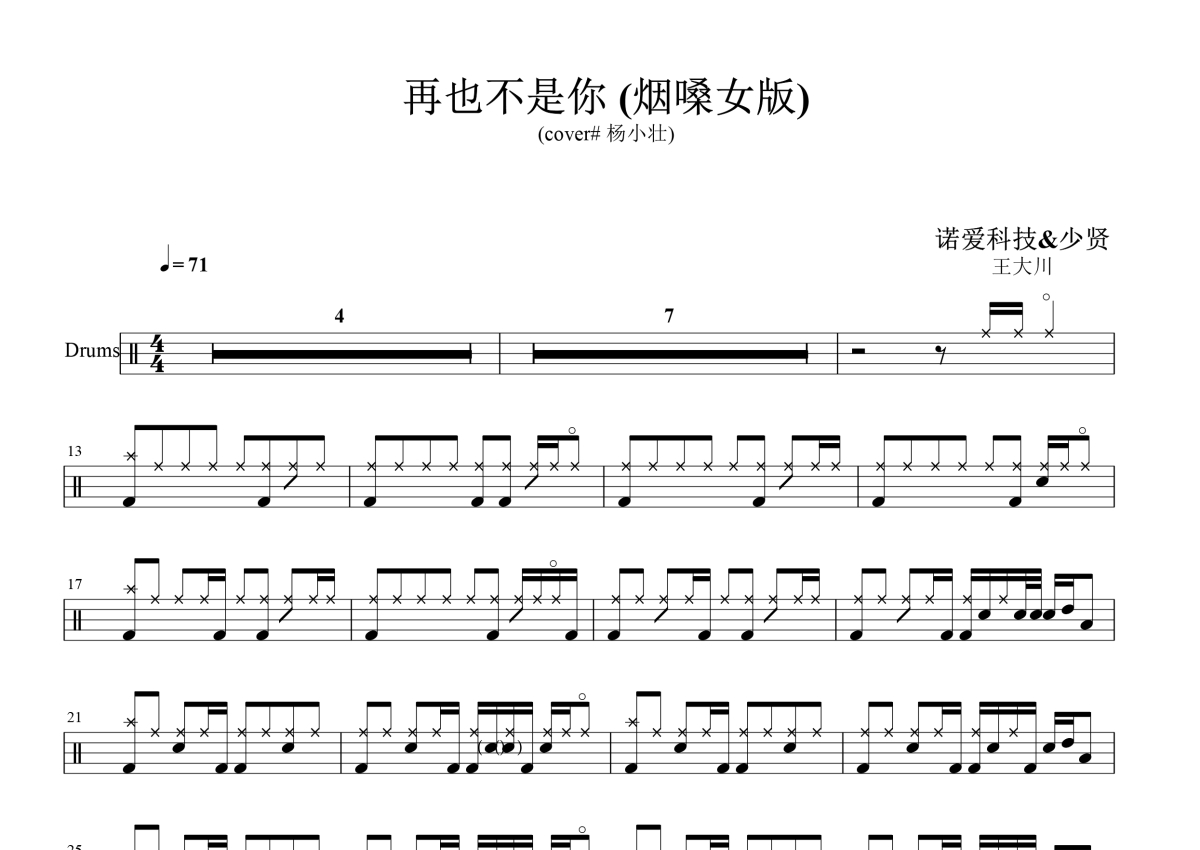 cover#杨小壮《再也不是你》鼓谱 - 架子鼓谱 - 烟嗓女版