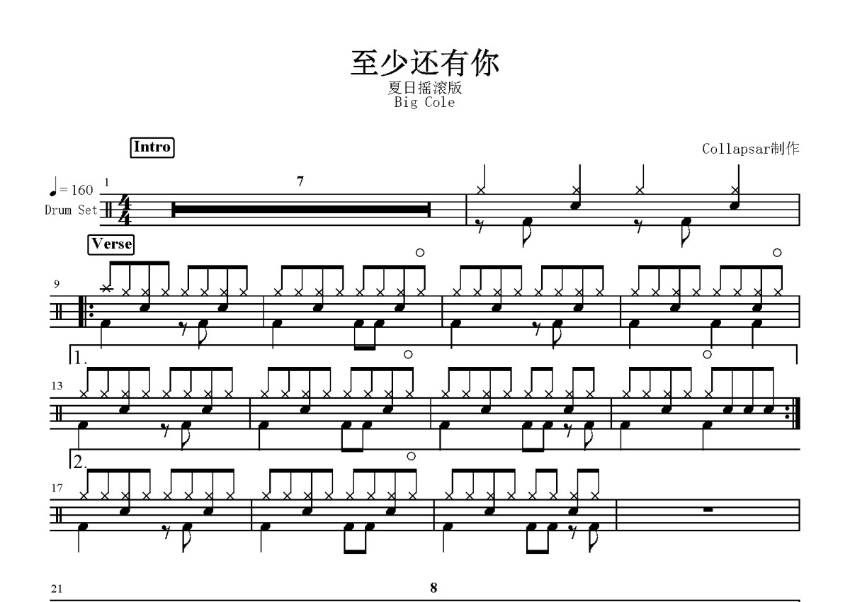 Big Cole《至少还有你》鼓谱 - 架子鼓谱
