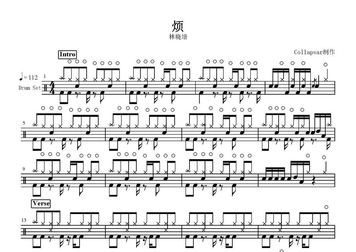 林晓培《烦》鼓谱 - 架子鼓谱
