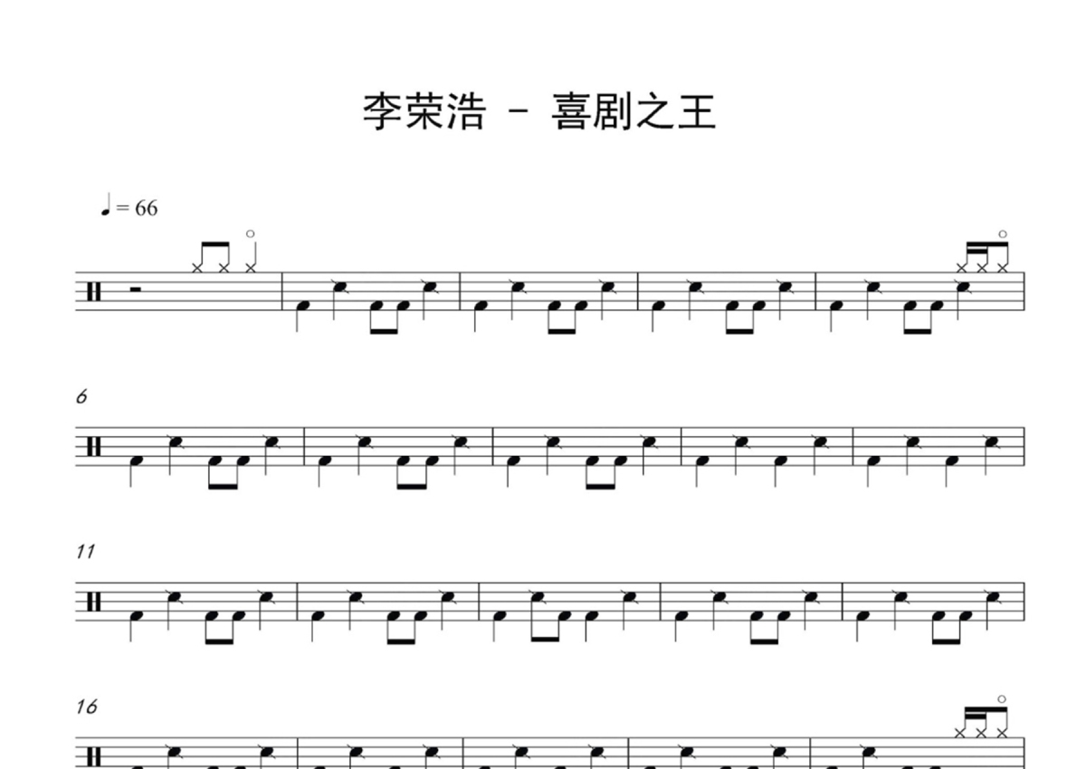 李荣浩《喜剧之王》鼓谱 - 架子鼓谱