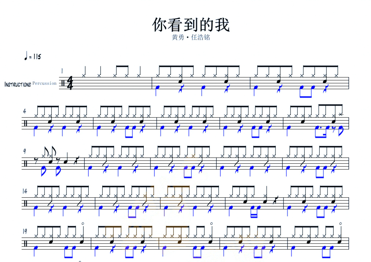 黄勇/任浩铭《你看到的我》鼓谱 - 架子鼓谱