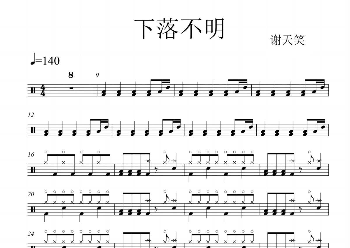 谢天笑《下落不明》鼓谱 - 架子鼓谱