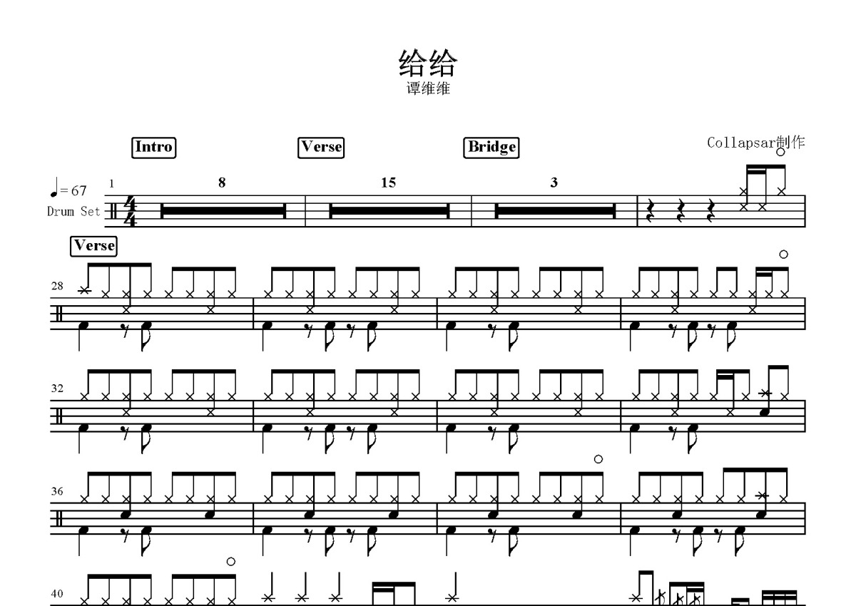 谭维维《给给》鼓谱 - 架子鼓谱