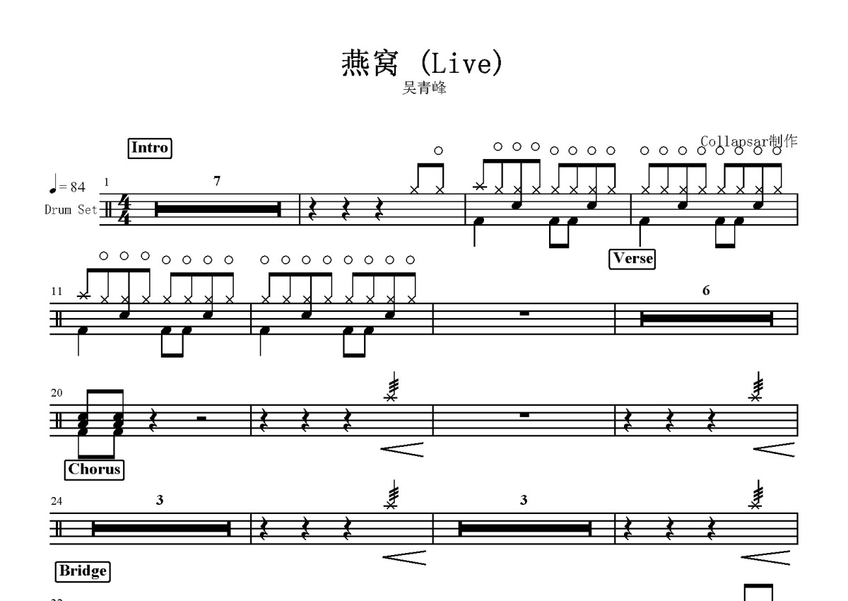 吴青峰《燕窝》鼓谱 - 架子鼓谱 - live