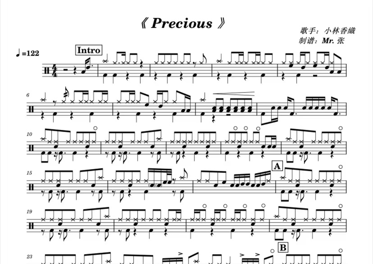 小林香織《Precious》鼓谱 - 架子鼓谱