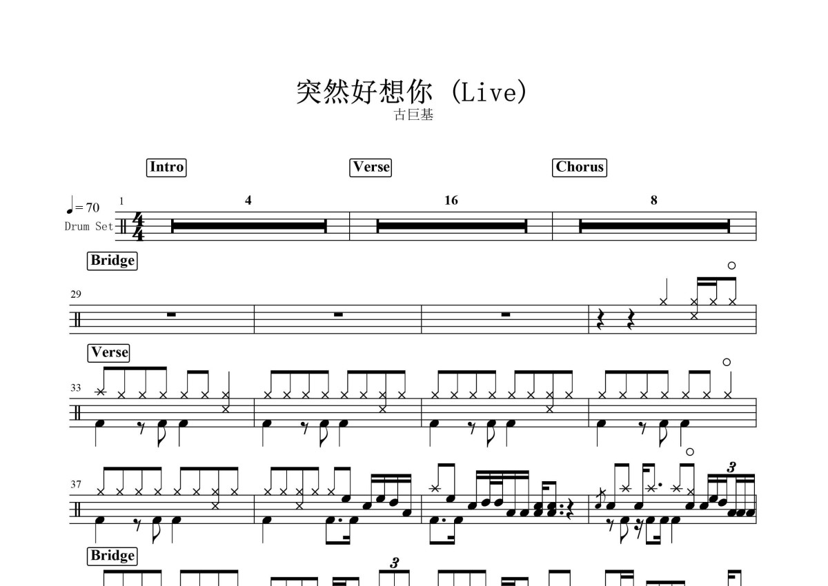 古巨基《突然好想你 (Live)》鼓谱 - 架子鼓谱
