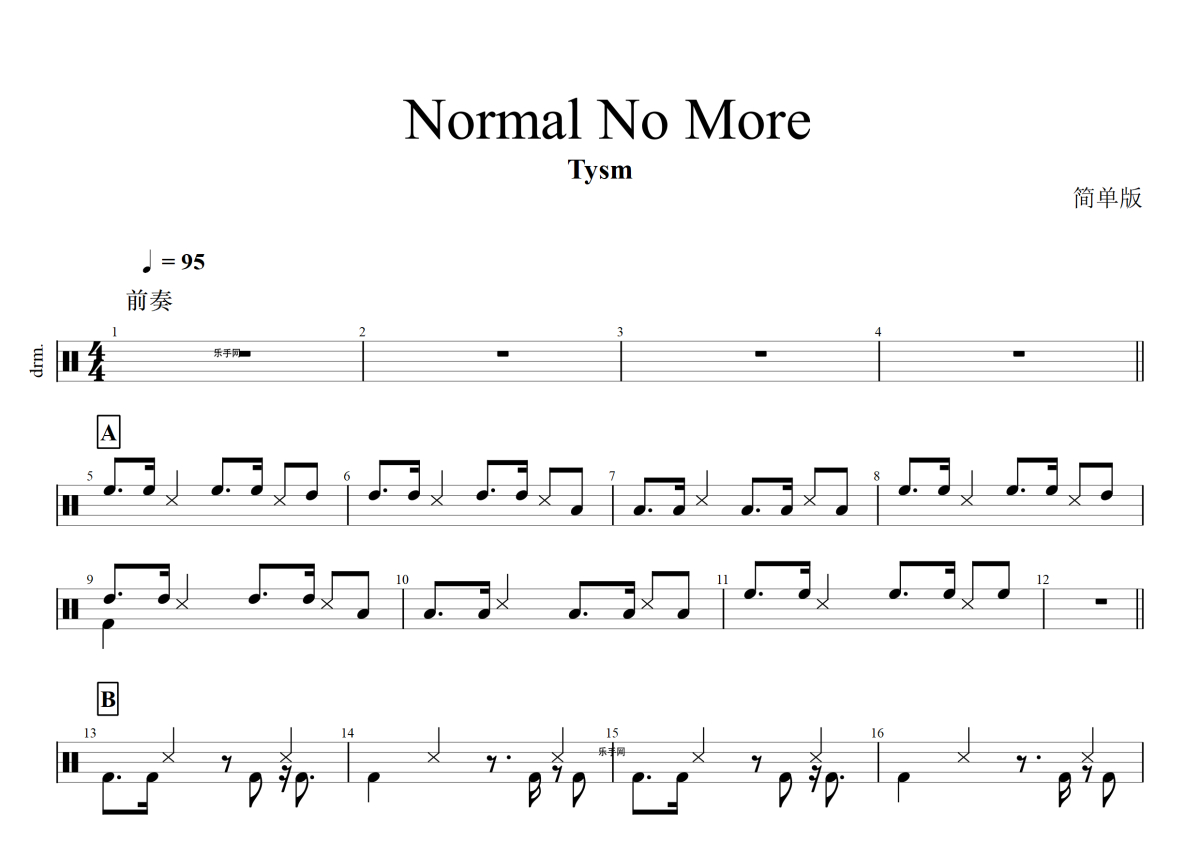 Tysm《Normal No More》鼓谱 - 架子鼓谱