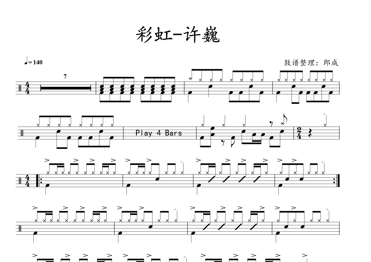 许嵩《彩虹》鼓谱 - 架子鼓谱