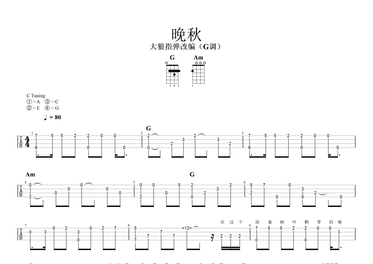 毛宁《晚秋》尤克里里谱 - G调尤克里里谱 - 指弹