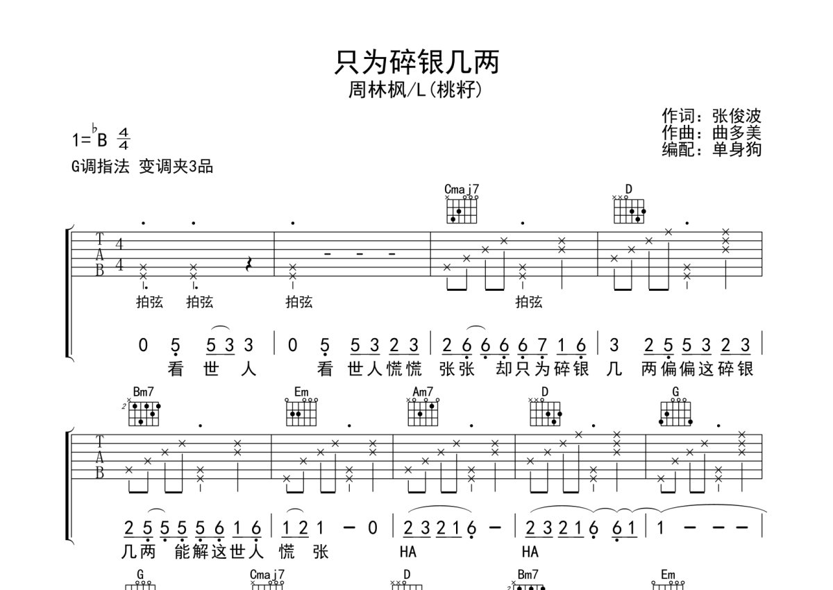 周林枫/L(桃籽)《只为碎银几两》吉他谱 - G调弹唱六线谱