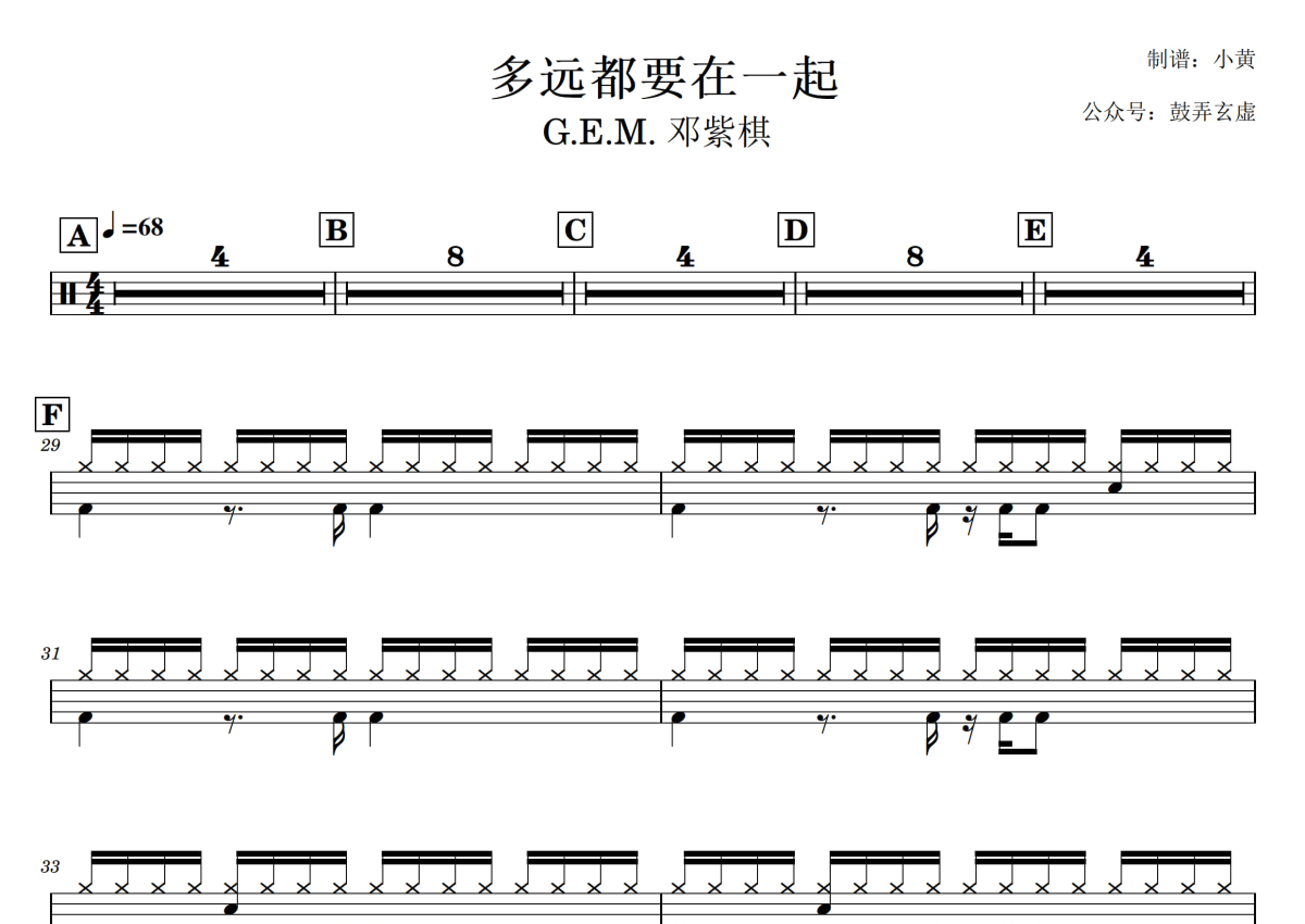 邓紫棋《多远都要在一起》鼓谱 - 架子鼓谱