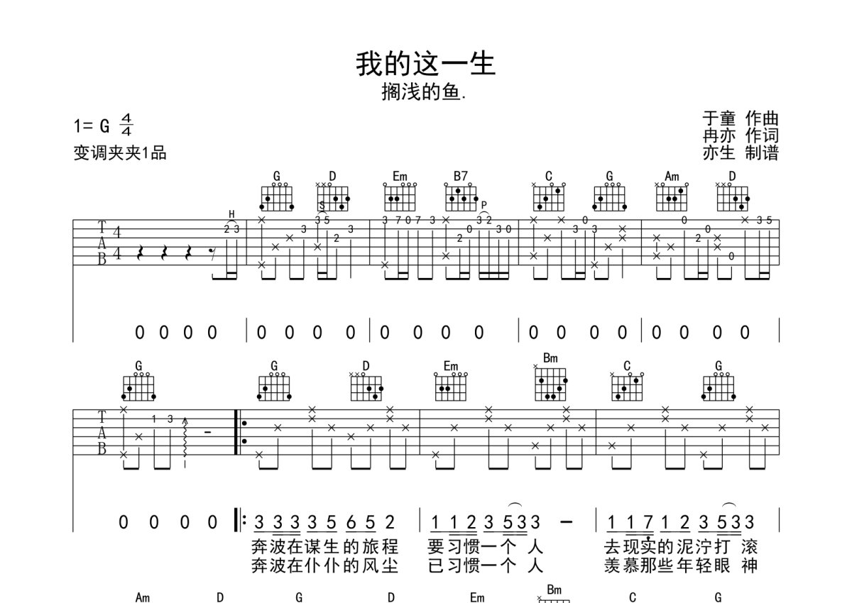 搁浅的鱼.《我的这一生》吉他谱 - G调弹唱六线谱