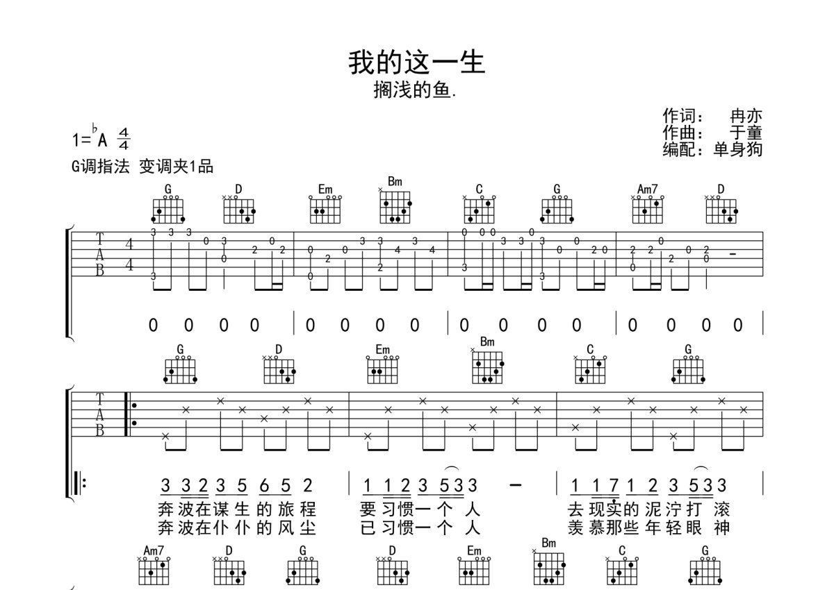 搁浅的鱼《我的这一生》吉他谱 - G调弹唱六线谱